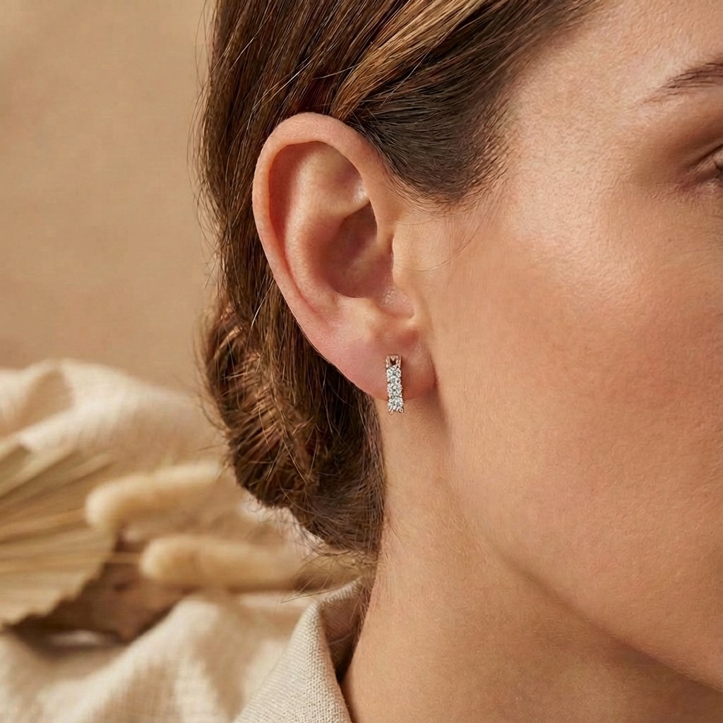 Náušnice Pure Line 3 ze 14karátového růžového zlata jsou ztělesněním něžné elegance a precizního řemeslného zpracování. Tři laboratorně pěstované diamanty s kulatým brusem jsou pečlivě zasazeny do linie, která podtrhuje ženskou krásu a dodává šperku jemný lesk. Díky promyšlenému designu můžete náušnice nosit svisle, vodorovně nebo šikmo – podle vaší nálady či příležitosti. Jejich univerzálnost z nich činí ideální doplněk pro každodenní nošení i výjimečné události. Celkem 6 (2x3) nádherných lab-grown diamantů s kulatým brusem v kombinaci se 14karatovým zlatem tvoří neodolatelný kousek, kterému jednoduše podlehnete. Luxusní nadčasové náušnice využijete ke každodennímu nošení, ale i jako designový doplněk večerních šatů.