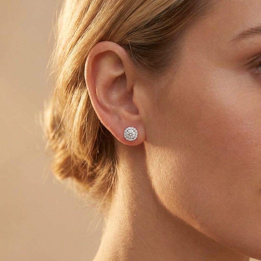 Náušnice z bílého zlata Divine představují dokonalé spojení elegance a udržitelného luxusu. Každý detail těchto náušnic vyzařuje sofistikovanost a šarm. Nádherná kombinace 18karátového bílého zlata a 16 lab-grown diamantů mistrně usazených v jemné obroučce okolo centrálního diamantu, nechají prostoupit světlo šperkem ze všech stran a zvýší tak ještě jeho bilanci. Náušnice Divine rozzáří dokonale vaši tvář. Vhodné i jako náušnice pro nevěstu. Briliantové náušnice Divine mají pohodlné puzetové zapínání. To tvoří hladká tyčinka z bílého zlata, na kterou se nasune puzetka.
