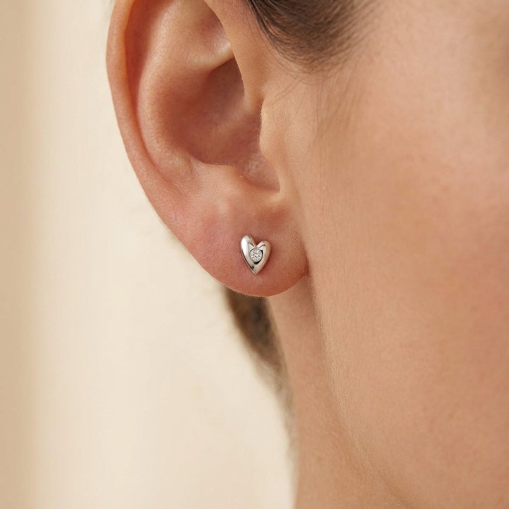 Náušnice z bílého zlata s diamantem Cute Heart