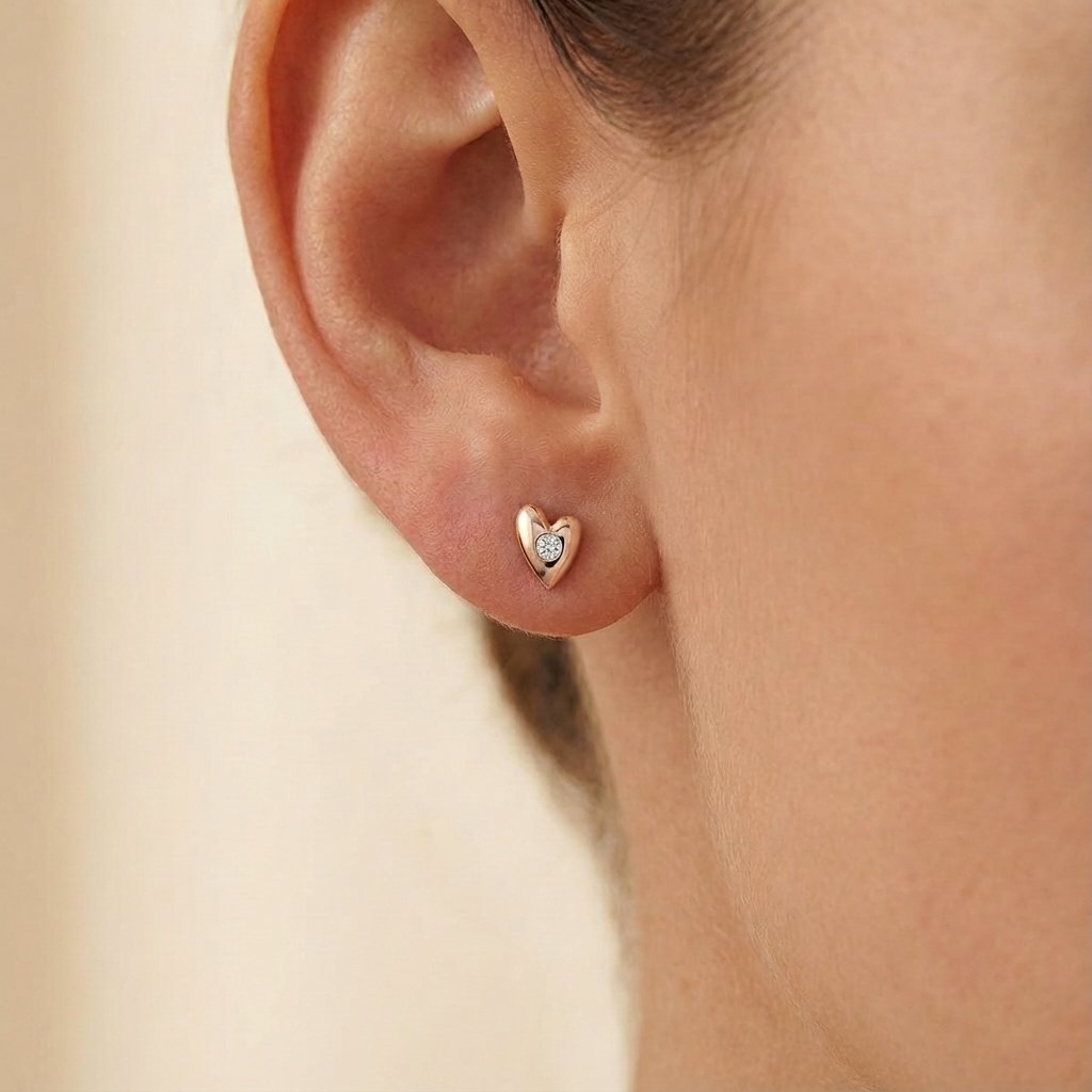 Náušnice Cute Heart z růžového zlata s lab-grown diamantem