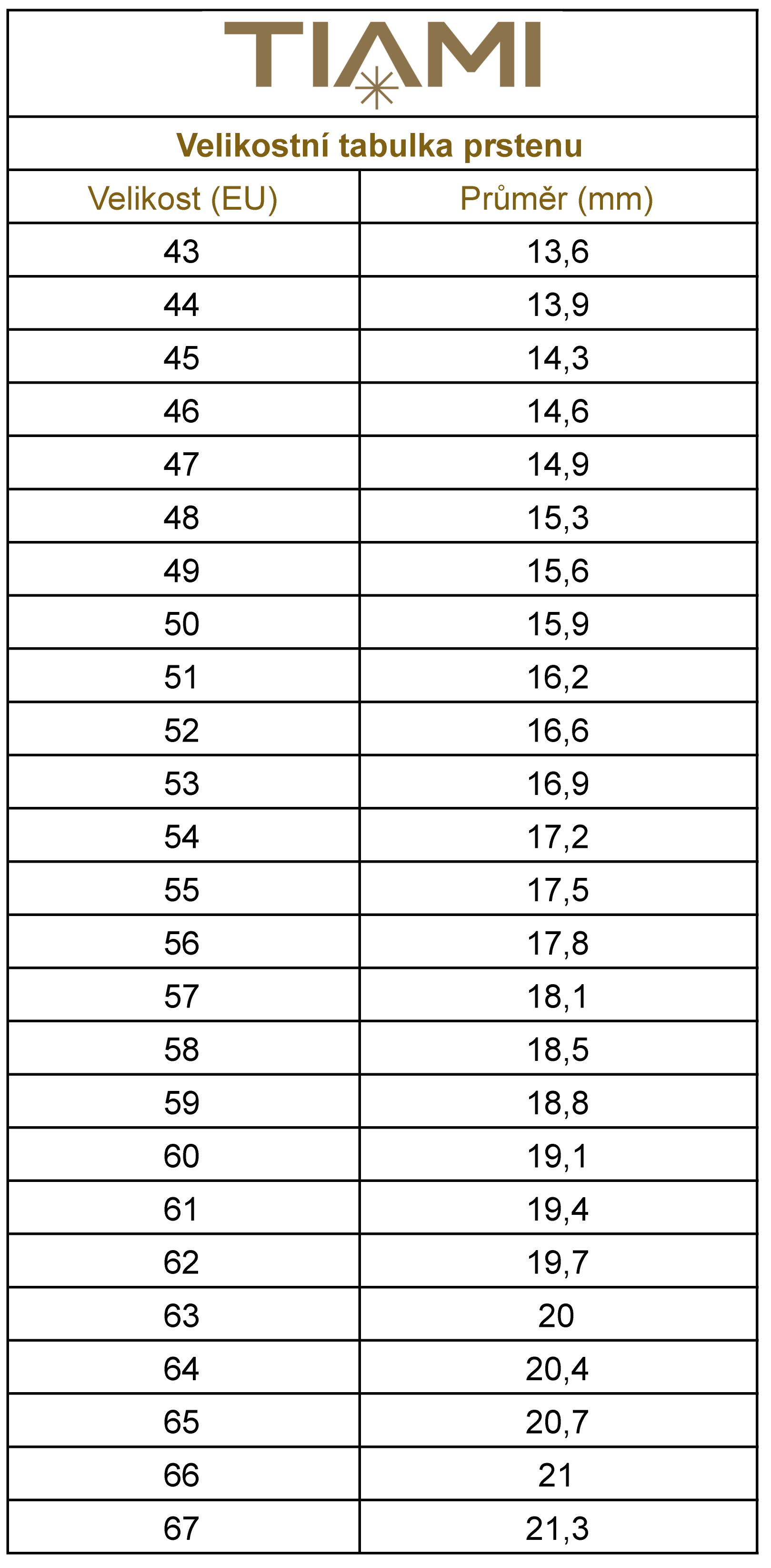 Výměna prstenu – Jelikož každý prsten TIAMI vyrábíme na zakázku, není pro nás problém upravit velikost na míru, a pokud úprava není možná, vždy hledáme individuální cestu, jak zajistit vaši spokojenost.