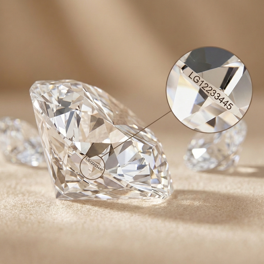 Součástí certifikátu je unikátní identifikační číslo konkrétního kamene. U diamantů od přibližně 0,30 ct bývá toto číslo mikrolaserem vyznačeno také přímo na jeho hraně, tedy na rundistě. Jde o velmi jemné gravírování, které není viditelné pouhým okem a lze jej přečíst až pod silným zvětšením.