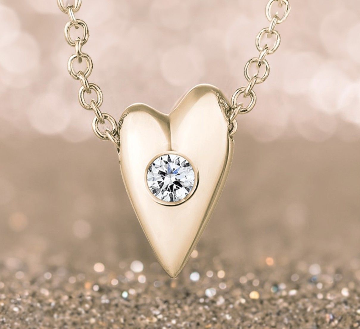 Ze srdce tvořeného z jemného zlata vychází jeden solitérní diamant, který ve svém středu nese to nejdůležitější – čisté a pravdivé vyznání lásky.