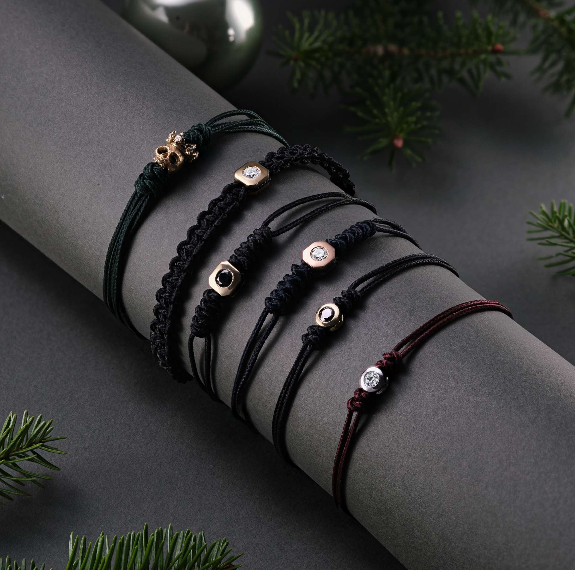 1. Provázkové náramky ze zlata s laboratorními diamanty v dámském i pánském provedení