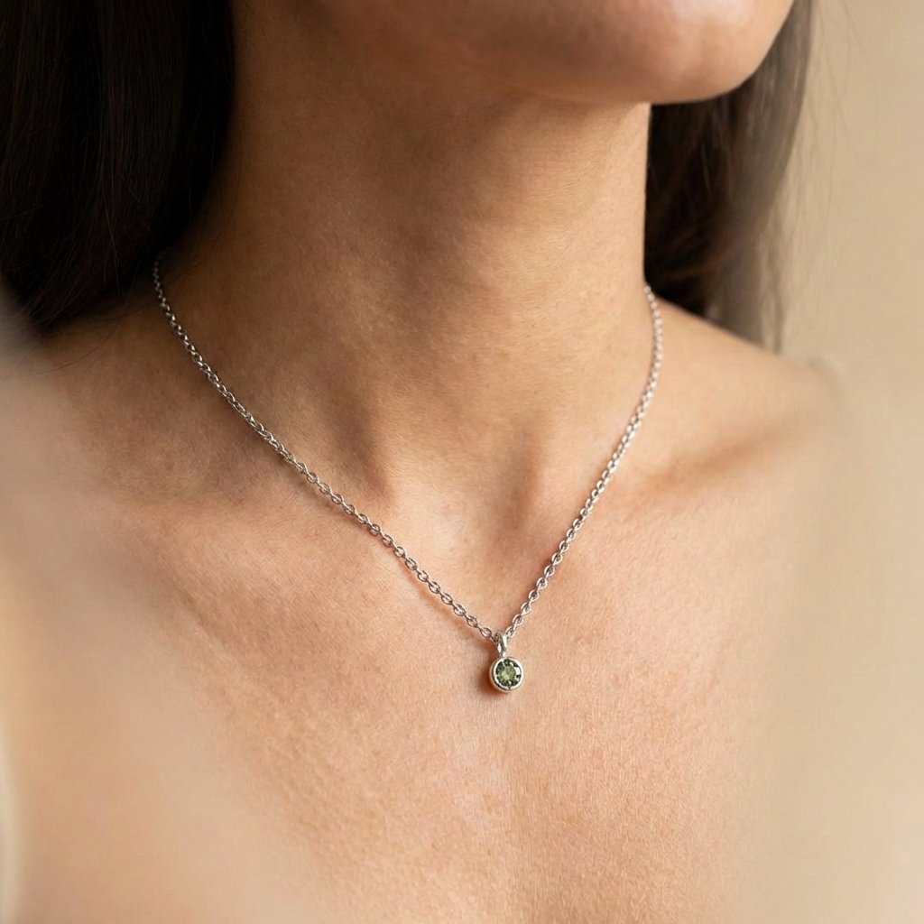 Zelený diamant je výjimečný svou barvou, která připomíná ranní kapky rosy na listech. Je symbolem harmonie, vitality a naděje. Každý kámen je jedinečný – stejně jako okamžiky, které prožíváte. Tento lab-grown diamant, vytvořený s ohledem na životní prostředí, představuje spojení přírodního půvabu a moderních hodnot.