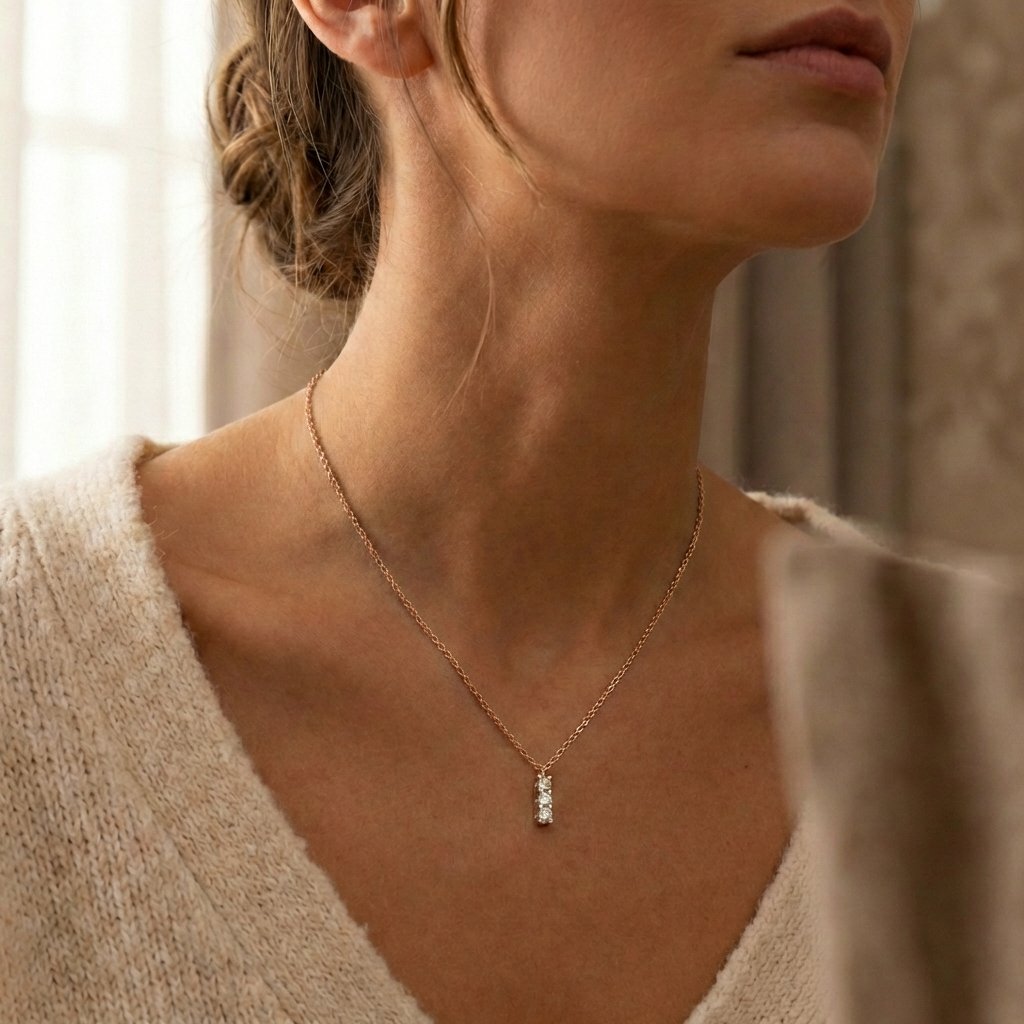 Pure Line 3 – přívěsek z 14k růžového zlata se třemi laboratorními diamanty o váze 0,21 ct. Minimalistický design, ruční výroba a jemný lesk, který podtrhuje ženskou eleganci.