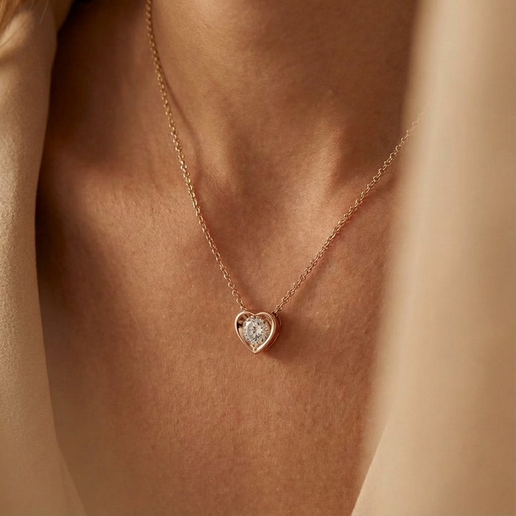 Přívěsek Pure Love ze 14karátového růžového zlata je něžný, a přitom výrazný – jako samotná láska, kterou symbolizuje. Uprostřed elegantního srdce je ručně zasazen lab-grown diamant o hmotnosti 0,31 ct, jehož brilance rozzáří každý den i každou náladu. Růžové zlato dodává šperku jemný tón romantiky a ženskosti, zatímco diamant přináší intenzitu a světelnou sílu, kterou si zamilujete na první pohled.