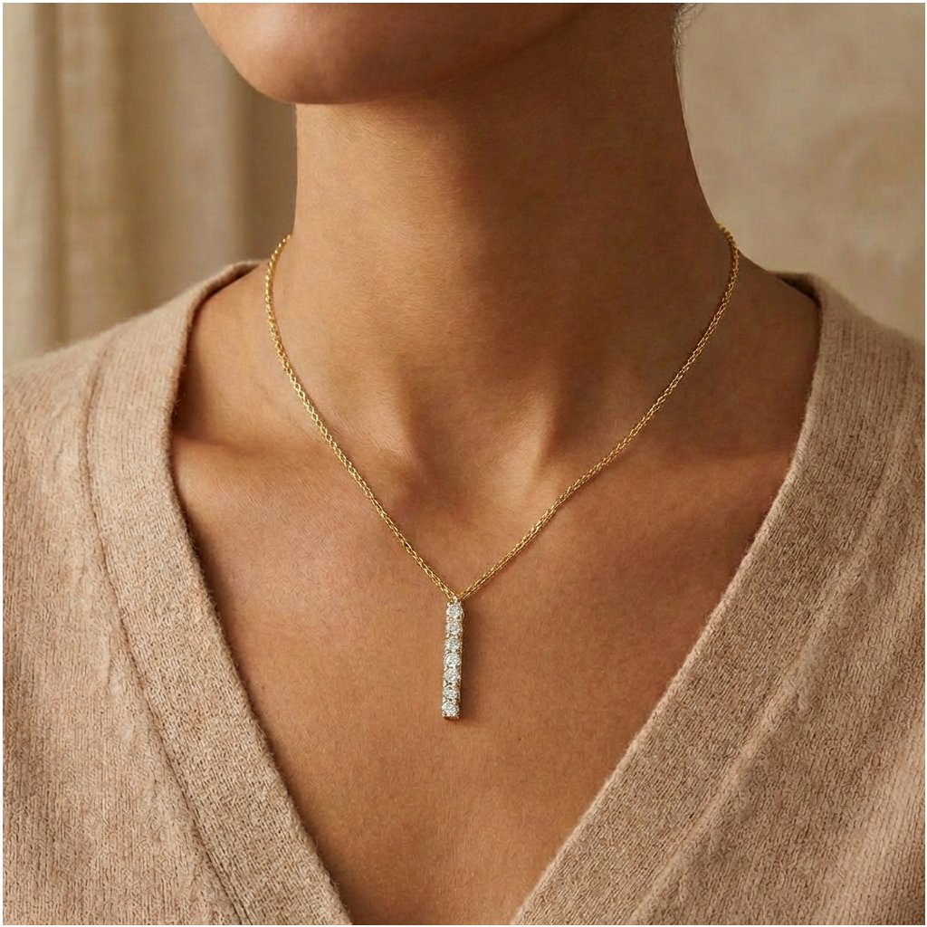 Diamantový přívěsek Pure Line 7 je ručně vyráběn z 14k žlutého zlata a osazen sedmi laboratorními diamanty o celkové váze 0,49 ct. Každý diamant s barvou E a brilantním brusem je zasazen s maximální přesností, aby naplno vynikl jeho lesk i čistota. Díky promyšlenému zasazení zůstávají kameny viditelné z každého úhlu – výsledkem je elegantní linie světla, typická pro šperky TIAMI.
