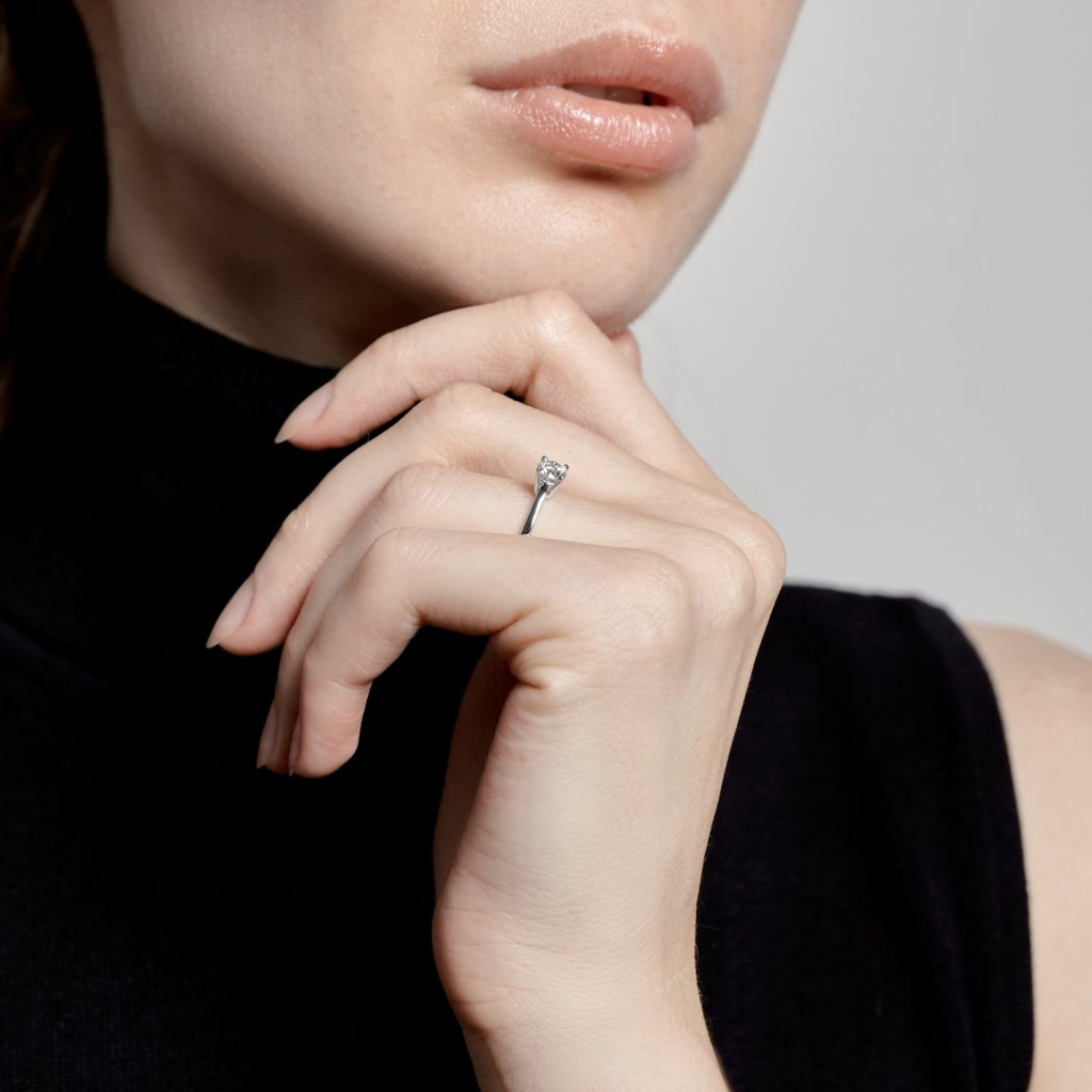 Prsten z bílého zlata s diamantem Grace Vás upoutá ihned, hledáte-li vhodný prstýnek k zásnubám, narozeninám, narození dítěte, promocím či významnému jubileu. Jeho jednoduchý a elegantní design podtrhuje nádherný solitérní lab-grown diamant s kulatým brusem o hmotnosti 0,45 ct. Grace znamená krásná, a právě tímto slovem lze popsat briliantový prsten z bílého 14karátového zlata.