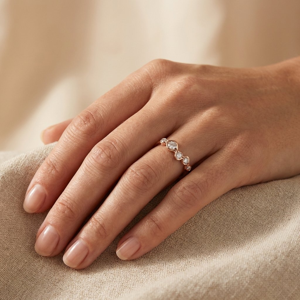 - Dokonalá kombinace 14karátového růžového zlata a 5 laboratorně vyráběných diamantů