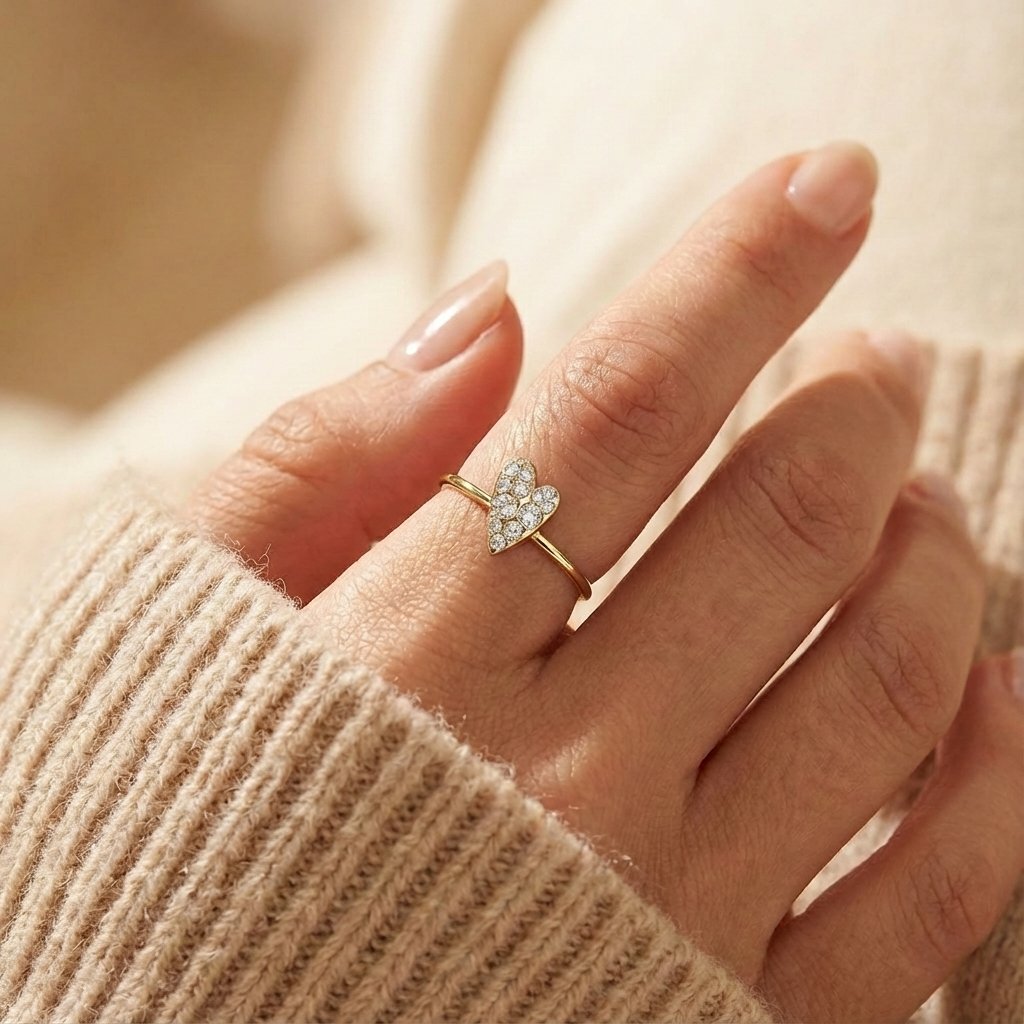 Diamantový prsten Cute Heart Sparkling ve tvaru srdce symbolizuje lásku, vášeň a životní vitalitu. Hlavním motivem prstenu je ručně vytvořené srdce, jehož povrch dekoruje 13 broušených laboratorních diamantů s dokonalou brilancí, které jako třpytivé hvězdy rozzáří vaši ruku. Celková karátová hmotnost diamantů ve šperku je 0,26 ct. Prsten Cute Heart Sparkling je vyroben ze 14kt žlutého zlata. Jeho minimalistická obroučka nechává maximálně vyniknout design stylového srdíčka.