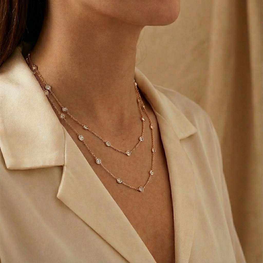 Zlatý řetízek z růžového zlata s přívěsky Sweetie Mini je kouzelný dámský šperk, který nádherně rozzáří každý váš den. "Sweetie" vyjadřuje náklonnost a pozornost vůči druhé osobě, něžné pojmenování partnera, lásku nebo vřelost. Minimalistický design, třpyt a brilance každého z laboratorních diamantů perfektně doplní váš outfit ať už se vydáte kamkoliv.
